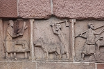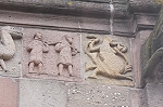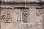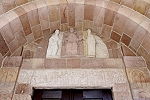 Am Türsturz wird die Geschichte von Adam und Eva, Schöpfung und Sündenfall sowie Vetreibung aus dem Paradies gezeigt.