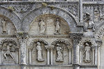 An der mehrgeschossigen, gewaltigen Schauwand findet sich außergewöhnlich reichhaltiger Skulpturenschmuck.