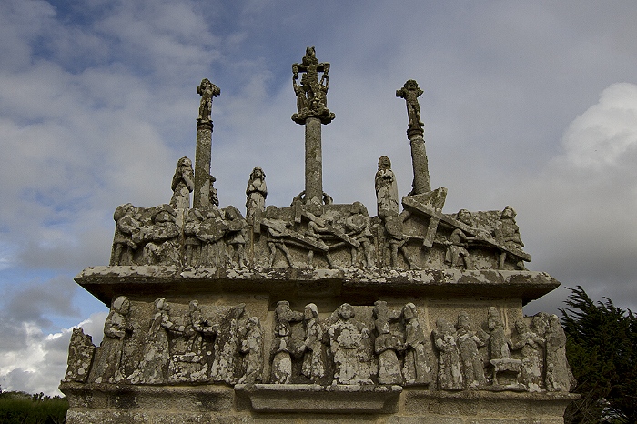 Notre Dame de Tronoën: der Calvaire ist der älteste der Bretagne (1450/70), dementsprechend verwittert sind die Figuren