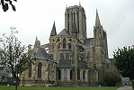 und ihrem wuchtigen Vierungsturm die Silhouette der Stadt Coutances.