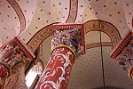 Im Innern fallen die zwischen 1855 und 1860 von Anatole Dauvergne mit roten Ornamenten bemalten Säulen auf.