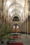 romanischen Pfeilerbasilika erbaut. Kennzeichen dafür ist der kreuzförmige Grundriss mit Langschiff, zwei Seitenschiffen, Vierung, Chor und den beiden Seitenapsiden.
