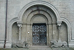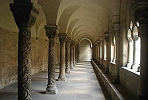 der Kreuzgang mit reichem Figurenschmuck, Friesen und Kapitellen,