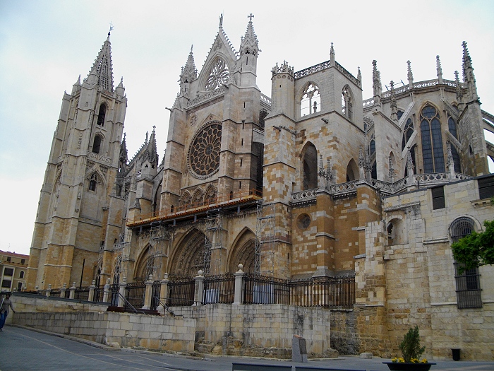 Die ab 1255 errichtete Kathedrale von Leon wurde im Stil der französischen Gotik errichtet. Vorbild war vor allem die Kathedrale von Reims. Die etwa 200 Glasfenster aus dem 13.-16. Jh erzeugen ein beindruckendes Farbenspiel im Innenraum.