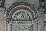 Besonders erwähnenswert ist die in einem eigenen Stil gestaltete, unsymetrische Fassade von Guidetto da Como, die in ihrer Gestaltung der Fassade am Dom von Pisa ähnelt.