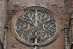 An allen drei Seiten befinden sich große Fensterrosen. Der 87m hohe Glockenturm überragt die Westfassade um einiges, wie aus der Ferne (Bild 10) zu sehen ist.