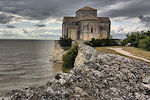 Auf einer am nördlichen Ufer der Gironde hineinragenden Felsklippe im französischen Ort Talmont-sur-Gironde steht die im romanischen Stil der Saintogne erbaute Kirche "Sainte-Radegonde" aus dem späten 11 Jh. Die der heiligen Radegundis geweihte Kirche glänzt mit ihrer aussergewöhnliche Lage.
