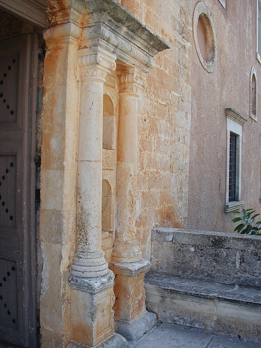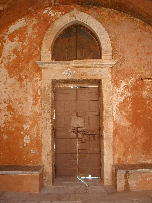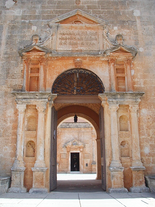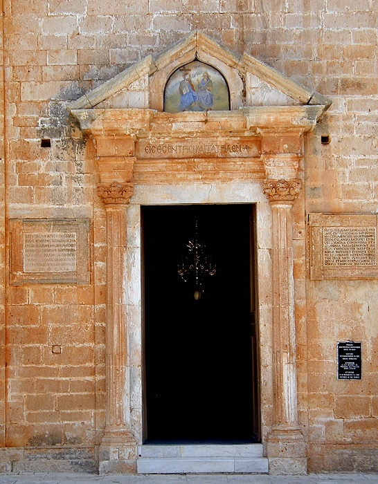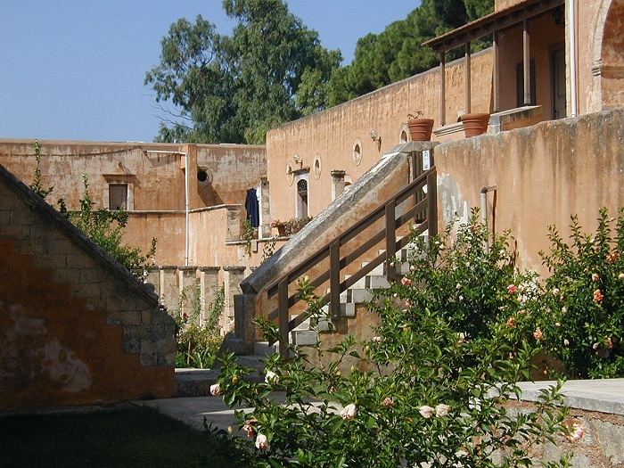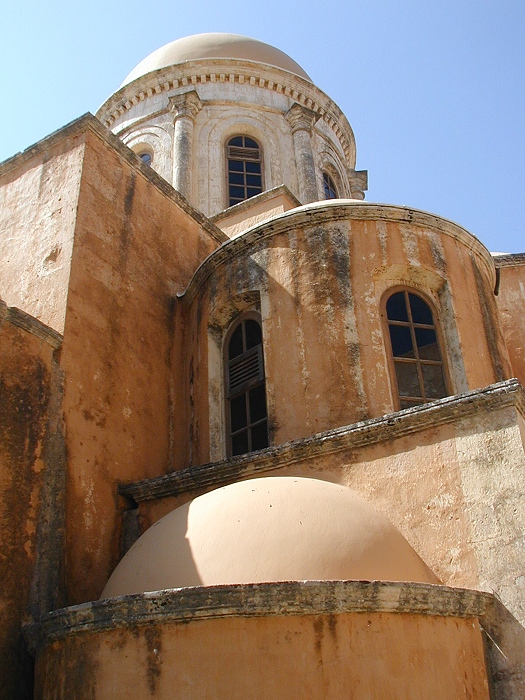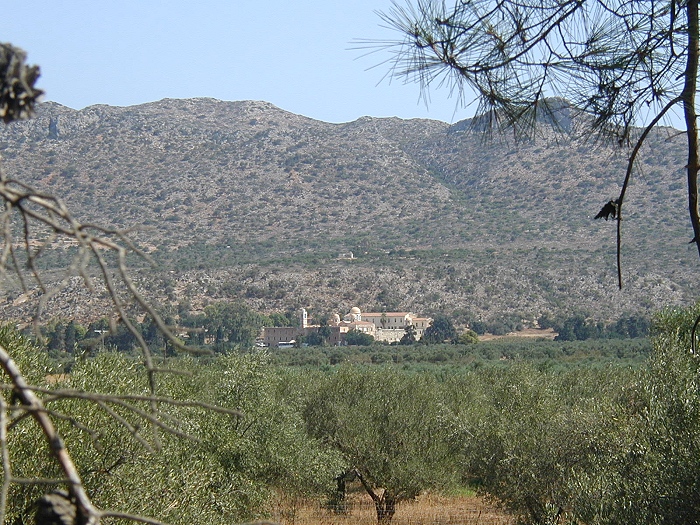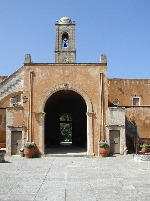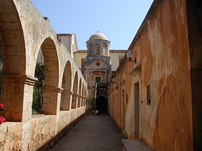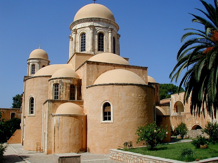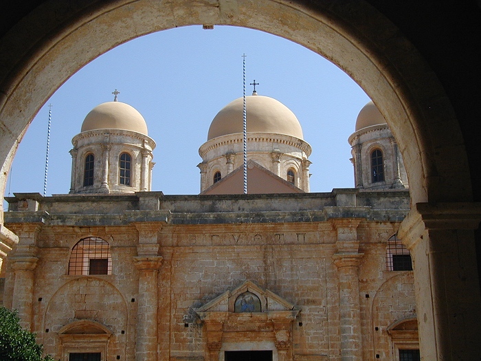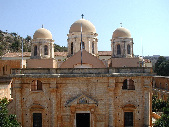 Das griechisch-orthodoxe Kloster Agia Triáda auf Kreta beindruckt mit seiner Kreuzkuppelkirche mit Renaissancefassade. Das auf der Halbinsel Akrotirí nahe Chaniá liegende Kloster stammt dem 17.Jh. und wurde von den Büdern Jeremias und Laurentzios Zangarola, zwei Angehörigen einer venezianischen Familie gegründet. Nach einem Konflikt mit den Türken 1821 wurde das Kloster erheblich beschädigt, aber bis 1830 wiederaufgebaut. Die heute dort lebenden wenigen Mönche leben vom Wein- und Olivenanbau. Das Kloster beherbergt ein sehenswertes kleines Museum mit einer Sammlung von Ikonen und Handschriften.