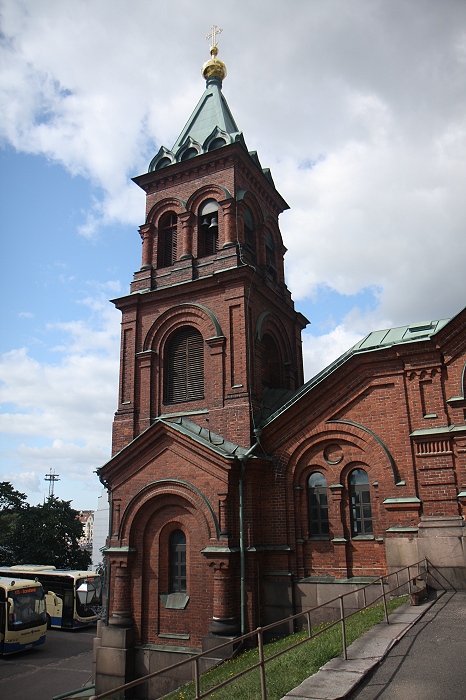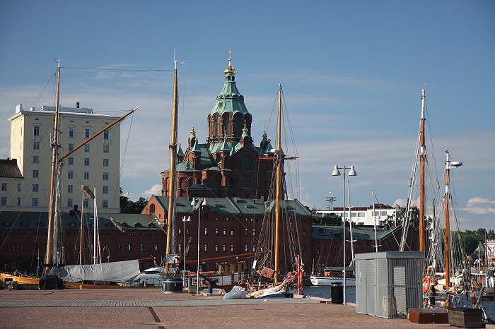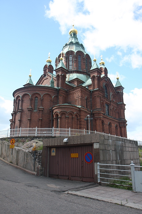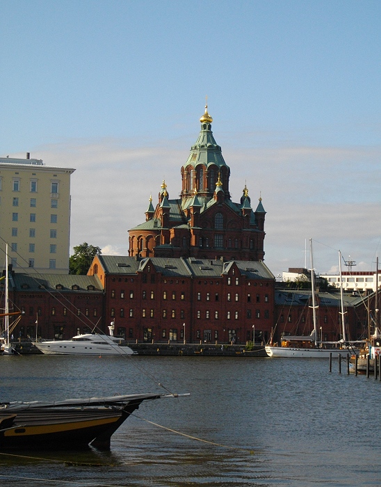 Die 1868 geweihte Uspenski-Kathedrale ist die Bischofskirche des orthodoxen Bistums von Helsinki. Die größte orthodoxe Kirche Westeuropas wurde Mitte des 19. Jh von Alexej Gornostajew im russisch-byzantinischem Stil entworfen. Die auf einem Felsen thronende Kathedrale prägt zusammen mit dem Dom das Stadtbild von Helsinki.