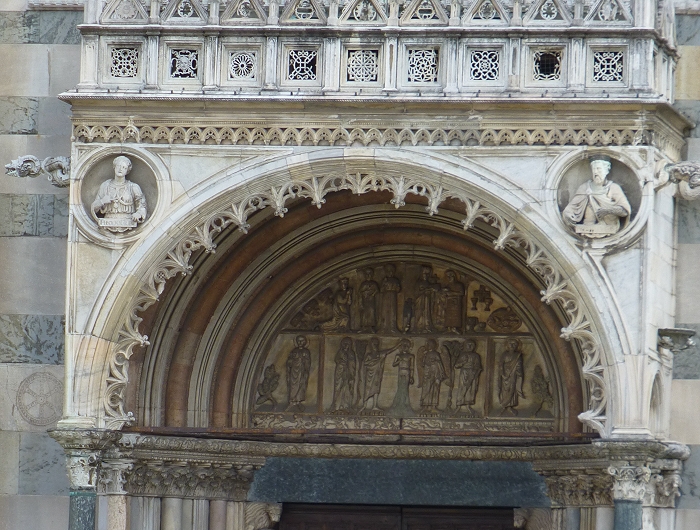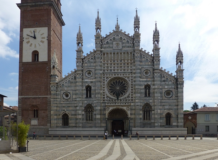 Auf einem großen Platz im Zentrum von Monza steht der wunderschöne Dom. Die "Basilica di San Giovanni Battista" mit ihrer reichverzierten Marmorfassade hat ihren Ursprung im Jahr 595, als die damalige Königin der Langobarden, Theodelinda, in der Nähe ihres Palastes eine erste Kirche errichten ließ. Sein heutiges Aussehen erhielt der "Duomo" ab dem 14. Jh unter der Herrschaft der Visconti. Zylindrische und achteckige Säulen mit detailreichen Tiermotiven an den Kapitellen unterteilen den Innenraum in drei Schiffe. Der Hauptaltar ist das Werk des Andrea Appiani. Die seitlichen Kappellen und auch die Apsiden sind mit Fresken bemalt. Mit dem Bau des 75m hohen Glockenturms wurde erst 1592 begonnen. Im Dommuseum ist die eiserne Krone der Lombarden aufbewahrt. Sehenswert ist auch die in der Nähe stehende "Chiesa di Santa Maria in Strada" aus dem 14. Jh.