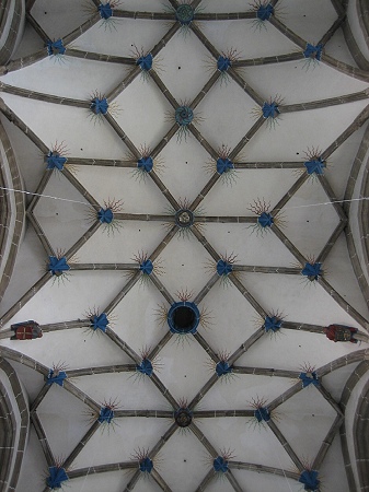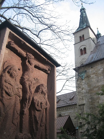 Im Jahr 1000 wurde Nordhausen zum Wallfahrtsort, weil das Domstift einen Bruchteil des Heiligen Kreuzes geschenkt bekam - vielleicht durch Kaiser Otto III. Der heute sichtbare Bau geht ins 12. Jahrhundert zurück: Die romanische Krypta datiert von 1130, ebenso wie die beiden Türme mit ihren Kapellen. Auch die Reste des Kreuzgangs stammen aus dieser Zeit. 1220 wandelt Friedrich II. das Frauen- in ein Domherrenstift um. 1267 wird der frühgotische, platt geschlossene Chor geweiht. Um 1450 erst beginnt der Bau des spätgotischen, 17 Meter hohen Hallen-Langhauses mit seinen Netz- und Sterngewölben. Auch nach der Reformation bleibt das Stift katholisch. 1810 wird das Domstift aufgehoben, der Dom wird einfache Pfarrkirche. Reparaturen folgen. 1945 brannte der Dachstuhl aus. Das Dach wurde 1964 rekonstruiert. |