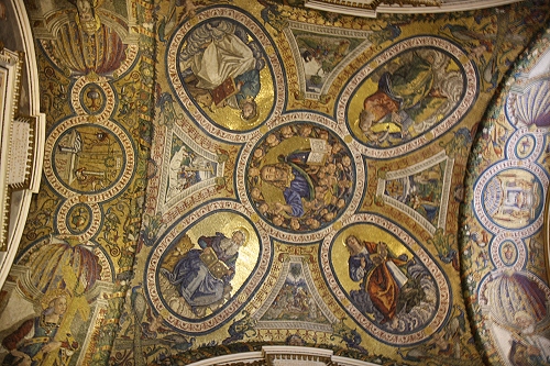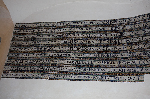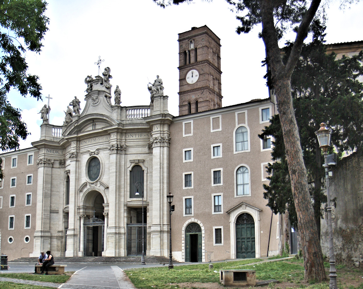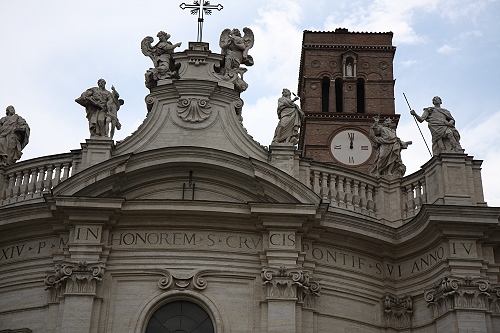 Nicht weit entfernt von der Basilika St. Johann im Lateran steht die Basilika "Santa Croce in Gerusalemme". Diese Kirche wurde im 18. Jh. im Barockstil neu erbaut. Der Glockenturm und der gut erhaltene Kosmatenfußboden stammen noch aus dem 12. Jh., als unter dem späteren Papst Lucius II. hier eine romanische Kirche entstand. Die Fundamente stammen aus dem frühen 4. Jh. Kaiser Konstantin ließ hier einen Saal des "Palazzo Sessoriano", von dem sich links neben der Kirche noch reste befinden, zur Kirche umbauen. Hier wurden dann die Kreuzesreliquien, die seine Mutter Helena aus dem heiligen Land mitbrachte, untergebracht. Die Kirche zum "Heiligen Keuz von Jerusalem" gehört zu den sieben Pilgerkirchen Roms. Heute betreuen Zisterzienser die Anlage.