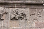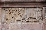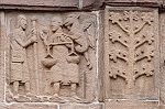 Am Türsturz wird die Geschichte von Adam und Eva, Schöpfung und Sündenfall sowie Vetreibung aus dem Paradies gezeigt.