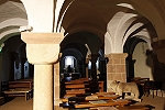 Die ehemalige Klosterkirche wurde mehrfach zerstört und wiederaufgebaut. Der älteste noch erhaltene Teil ist die Krypta aus dem 11. Jh.