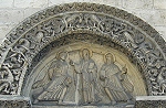 Die vier Scheinportale sind mit Tympana geschmückt, die Motive wie das Weltgericht oder der Apostelgeschichte zeigen.