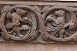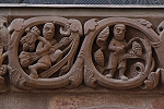 Auf der dem Rhein hinzugewandten Seite befindet sich überaus reicher Firgurenschmuck und Ornamentik.