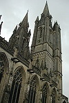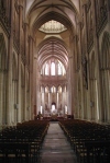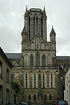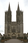 auf einer Anhöhe gelegene und von weitem sichtbare Kathedrale Notre-Dame. Sie dominiert mit ihren 75/77m hohen Türmen