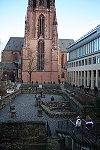 Der Kaiserdom "St. Bartholomäus" zu Frankfurt am Main ging ursprünglich aus einer karolingischen Kaiserpfalz hervor. Bild 12 zeigt die vor dem Dom ausgestellte Rekonstruktion dieser Pfalzanlage. Ein erstes Vorgängerbauwerk war wohl eine merowingische Kapelle aus der Zeit um 680.