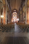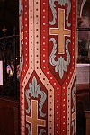 Im Innern fallen die zwischen 1855 und 1860 von Anatole Dauvergne mit roten Ornamenten bemalten Säulen auf.