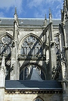 Außen beeindruckt das kunstvoll verzierte Strebewerk am Chor.