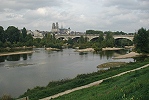 beim Blick an der Brücke Georg V. die Silhouette der Stadt Orléans.