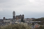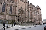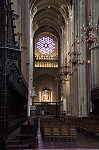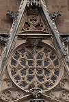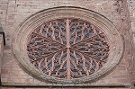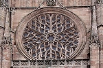 An allen drei Seiten befinden sich große Fensterrosen. Der 87m hohe Glockenturm überragt die Westfassade um einiges, wie aus der Ferne (Bild 10) zu sehen ist.