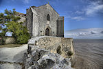Auf einer am nördlichen Ufer der Gironde hineinragenden Felsklippe im französischen Ort Talmont-sur-Gironde steht die im romanischen Stil der Saintogne erbaute Kirche "Sainte-Radegonde" aus dem späten 11 Jh. Die der heiligen Radegundis geweihte Kirche glänzt mit ihrer aussergewöhnliche Lage.