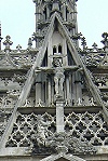 Der Schmuck an der reich verzierten Fassade ist in spätgotischem Stil geschaffen.