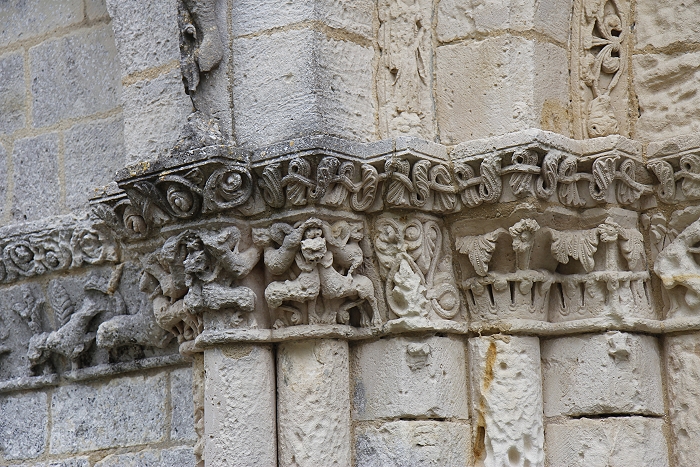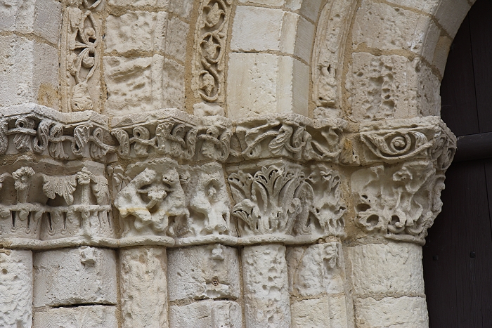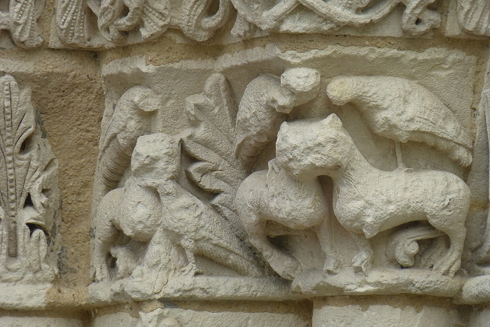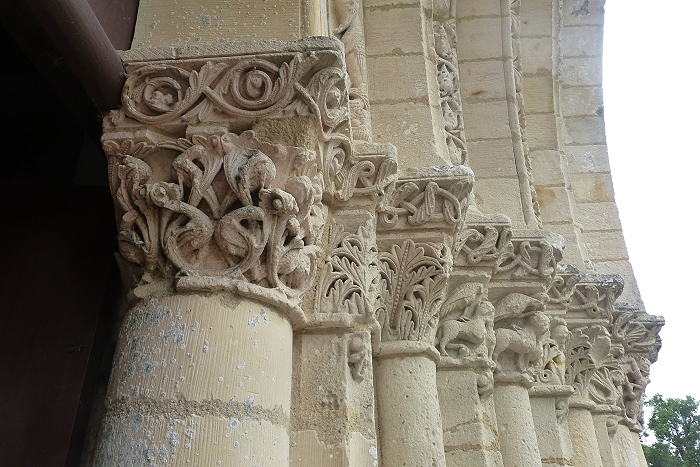 Église Notre-Dame in Biron stammt aus dem 12. Jh. An der schön gegliederten Westfassade finden sich zahlreiche Darstellungen von Fabeltieren und Blattwerkfriese. An der Südseite gibt es einen spätgotischen Kapellenanbau, der das besondere Erscheinungsbild dieser Kirche ausmacht. (Bilder 3 & 4). Das Kalvarienkreuz stammt aus dem 17. Jh.