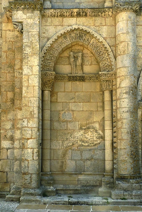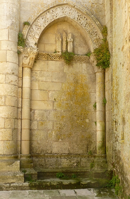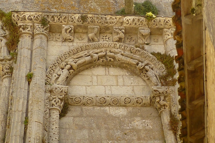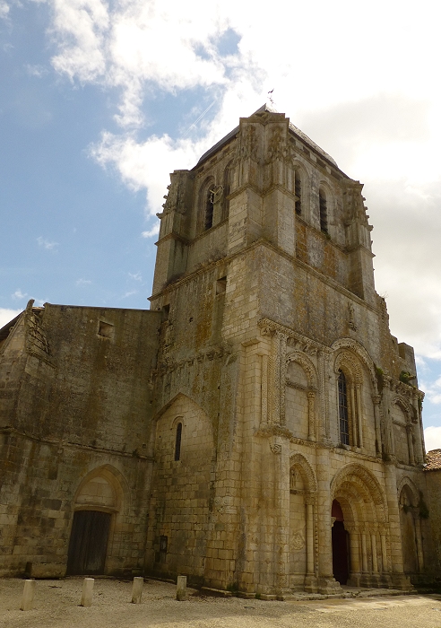 15 km westlich von Saintes, in dem kleinen Dorf Corme-Royal, steht eine der romanischen Perlen der Saintogne. Das Hauptinteresse gilt der Fassade, die durch Friese mit länglichen Figuren getrennt und mit Scheinportalen und Blindfenstern bestückt ist. Ihren Ursprung hatte die Kirche im 12. Jh. nach eine Tochtergründung der Benediktinerinnen der Abbaye-des-Dames aus Saintes, die hier auch ein Hospiz für ihre Kranken unterhielten. Das Gebäude wurde 1907 als historisches Denkmal klassifiziert.