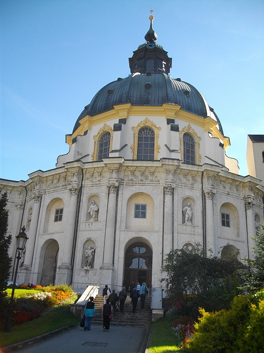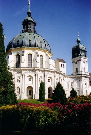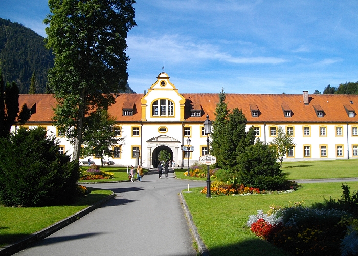 Kaiser Ludwig IV. (reg.1314-1347), im Volksmund Ludwig der Bayer genannt, gründete am 28.4.1330 das Ettaler Kloster. Die Gestaltung des bedeutenden süddeutschen Barockbaues geht auf den Ettaler Abt Placidus II. Seiz um 1709 zurück. Unter ihm hatte Baumeister Enrico Zuccalli (1642-1724) den zwölfseitigen gotischen Zentralbau umgebaut. Heute leben wieder über 50 Konventsmitglieder im Kloster und unterhalten zahlreiche Betriebe wie Bäckerei, Schreinerei, Verlag oder Brauerei.
