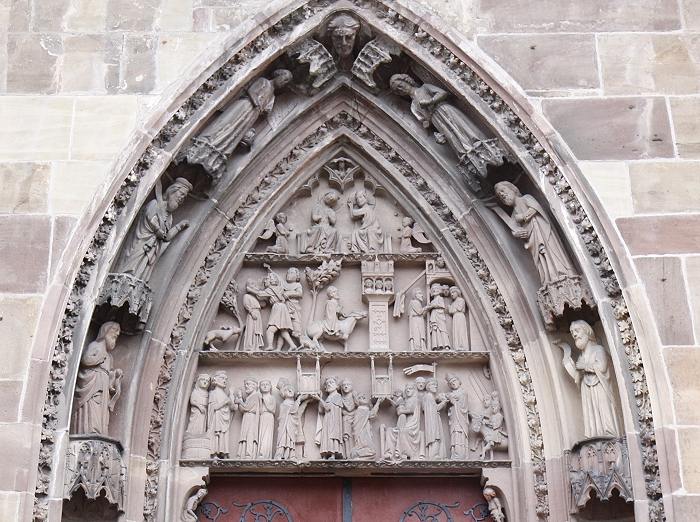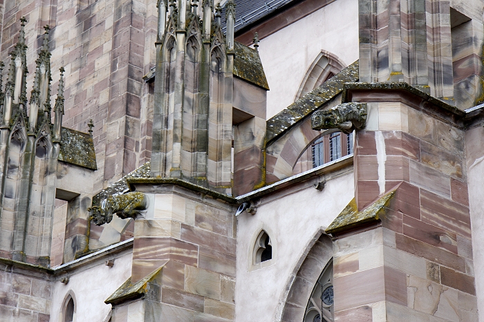 Wie im Mittelalter darf man sich fühlen, vorausgesetzt man befindet sich im Kirchenhof der ehemaligen Stiftskirche St. Florentius von Niederhaslach. Dort steht eine beeindruckende Sammlung teils mittelalterlicher Grabplatten. Die ehemalige Stiftskirche mit ihrem dreischiffigen Bau wurde ab 1274 an der Stelle einer Vorgängerkirche errichtet. Das besondere Erscheinungsbild einer der wichtigsten gotischen Kirchen im Elsass wird vor allem vom Turm mit seinem steilen, aus dem 19. Jh. stammenden Walmdach geprägt. Der eigentliche Schatz der ehemaligen Stiftskirche bilden aber die vielen original erhaltenen Buntglasfenster an Langhaus und Chor. Das Portal an der Westfassade enthält neben der originalen Fensterrose von 1325 auch ein sehenswertes Tympanon mit der Darstellung der Verkündung, der Marienkrönung und dem hl. Florentius. Rund um die Kirche befinden sich unzählige Wasserspeier. An der Sakristei ist das Relief "Christus am Ölberg" von 1492 angebracht.