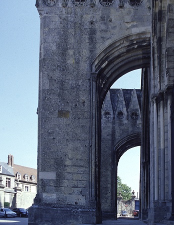 Die Kathedrale von Noyon wurde ab 1150 erbaut und ist ein Beispiel für den Übergang von der Romanik zur Gotik. Die 120 m lange Kathedrale hat eine Höhe von 21,5 m. Die Westfassade wurde ca. 1230 vollendet. Die Mauern der Kathedrale sind relativ dick. In der Frühgotik begann man, diese dicken Mauern durch Fenster und Laufgänge aufzulockern. In der näheren Umgebung zur Kathedrale befinden sich noch Kapitelsaal, Bibliothek des Domkapitels und der ehemalige Bischofspalast aus dem 16 Jh.
