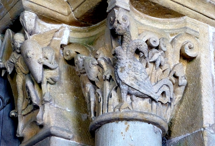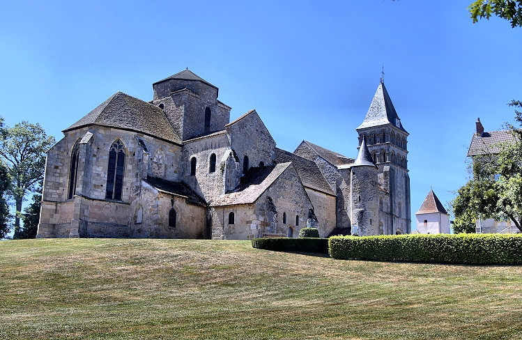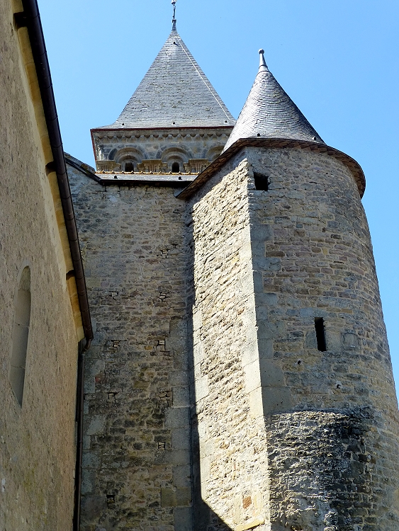Wie eine kleines Festung wirkt Église Saint-Pierre-et-Saint-Benoî in Perrecy-les-Forges. Die Kirche war Teil des gleichnamigen ehemaligen Benediktinerpriorats und entstand im frühen 10. Jh. Kunsthistorisch interessant sind die hier abgebildeten Kapitelle des Portalvorbaus und das Tympanon mit dem Türsturzrelief.