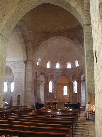 Der Anfang der Geschichte dieser Abtei geht auf ein Testament des Hl. Géraud, Abt von Aurillac, im Jahre 909 zurück. Die Abteikirche entstand auf den Resten einer Kirche des 10. Jh. zwischen 1075 und 1150 im romanisch-byzantinischen Stil. Hauptattraktion ist das Tympanon (Bilder 3 & 6), das heute nach innen verlegt ist und die Legende des Théophil zeigt. Ausgrabungen von 1950 brachten karolingische Überreste, Grabplatten und einen monolithischen Sarkophag zum Vorschein.