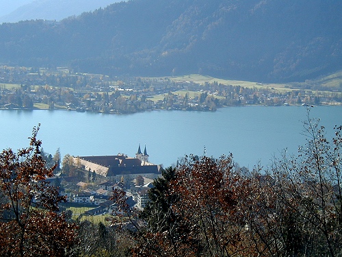 Die im 8 Jh. gegründete Benediktinerabtei Tegernsee war bis zur Säkularisation 1803 eines der bedeutensten Klöster Bayerns. Gegründet wurde es von den beiden adligen Brüdern Adalbert und Otkar. Im Jahre 978 wurde es nach einer Zerstörung von Trierer Mönchen neu gegründet. In diese Zeit fallen auch die berühmten Tegernseer Handschriften. Die frühesten figürlichen Glasmalereien entstanden hier in Tegernsee, in der Basilika St.Remi von Reims und im Dom zu Augsburg. 1805 erwarb Freiherr von Drechsel die Klostergebäude und ließ mehrere Klostergebäude abbrechen. 1817 ging die Anlage an Maximilian I. (+1825) und später an andere Königsfamilien über.